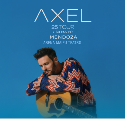 Axel anunció una gran gira nacional para celebrar sus 25 años de carrera. En la primera etapa del “25 Tour”, el músico recorrerá distintas ciudades y actuará el 30 de mayo, en el Arena Maipú Teatro. La preventa de entradas exclusiva para clientes Santander American Express está disponible en Tuentrada.com hasta agotar stock.
