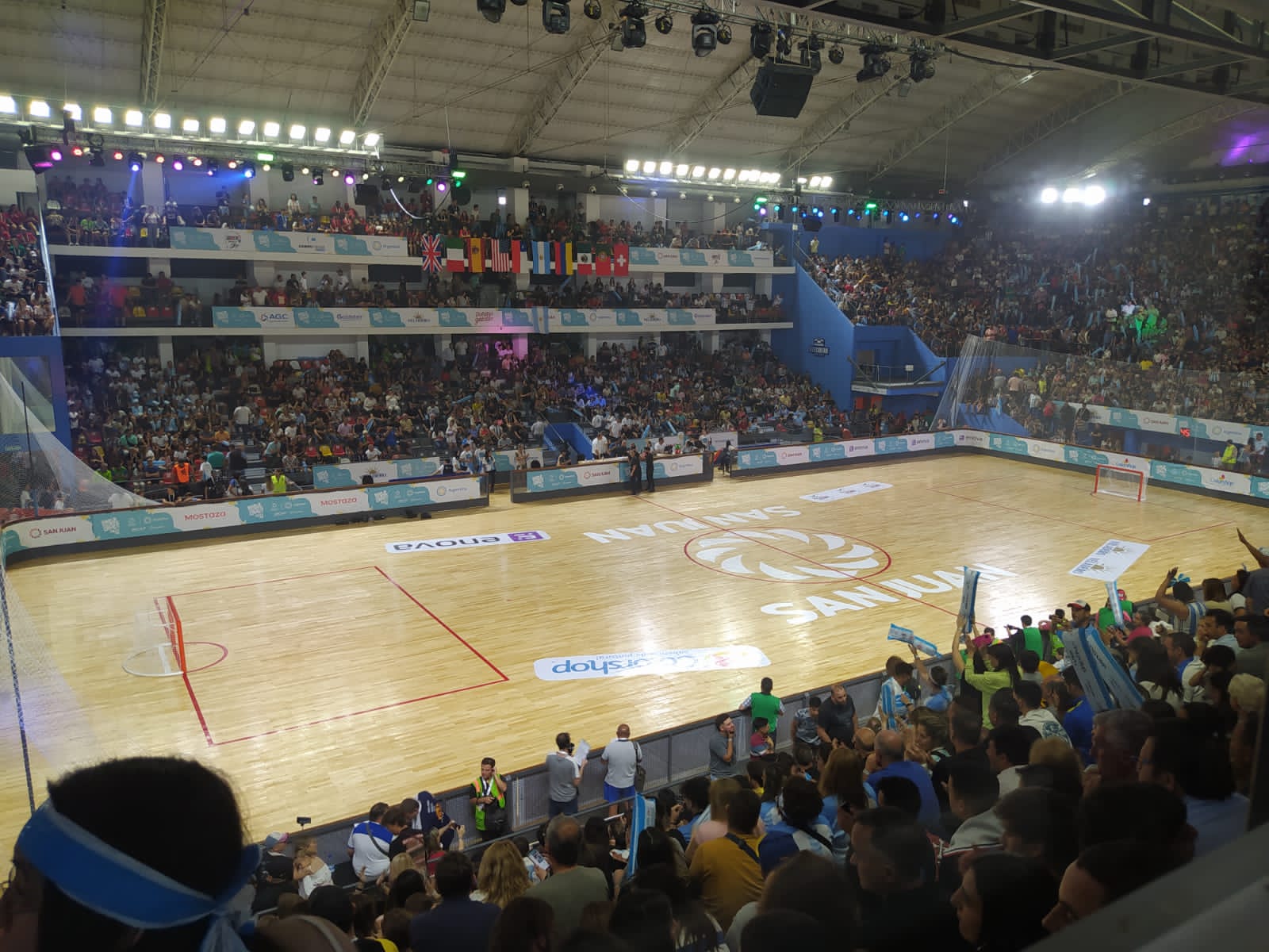 España empezó a mover la bocha casi al punto de agotar su posesión, Argentina con mucha garra y corazón intentaba recuperar rápido y salir de contra pero no podía con la efectividad del arquero los de casa Roja, el partido tenia condimentos especiales a los 5 minutos este intenso segundo tiempo se produce una falta en el área y el arbitro no duda en sacar tarjeta azul al jugador español Guillem, y la responsabilidad del empate la tenía su capitán Giuliano Giuliani quien en una magistral jugada saco al aquero de posición lo movió y se fabrico el espacio para poner el empate y hacer delirar al Cantoni repleto.