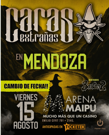 La banda de rock Caras Extrañas vuelve a Mendoza como parte de su gira 2025. El viernes 15 de agosto, en el Estadio Arena Maipú. Las entradas están disponibles en Ticketek.com.ar y boletería del Arena.