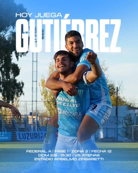 Gutiérrez Sport Club jugará desde las 15.30 ante Atenas de Río Cuarto. El partido se hará en el estadio Anselmo Zingaretti y contará con el arbitraje de José Díaz, de la Liga de Villa Mercedes.