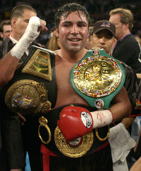 El denominado Golden Boy, de 48 años, es el único boxeador que ganó títulos mundiales en seis categorías diferentes: superpluma, liviano, superliviano, welter, superwelter y mediano, y provocó más de 700 millones de dólares en ingresos de pago por evento.