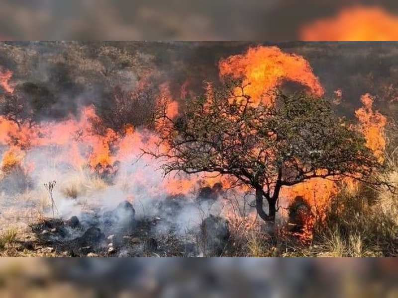 El punto de incendio cubre unos mil metros sobre el costado de la sierra. Por las características del campoo, se analiza la utilización de un helicóptero con helibalde para matarlo.