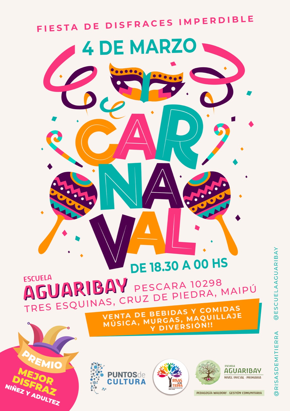 Escuela mendocina de gestión comunitaria hará su propio Carnaval. Se trata de Aguaribay, la escuela que fue un sueño y lleva adelante la Asociación Civil sin fines de lucro Familias de mi Tierra.