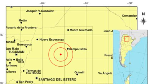 Según organismos como el Inpres, el movimiento se reportó a 593 kilómetros de profundidas y tuvo su epicentro a 42 kilómetros al sudoeste de Campo Gallo.