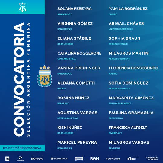 Ambas son parte de un plantel que tiene en la mira la Copa América que se disputará del 12 de julio al 2 de agosto en Ecuador y el Mundial de Brasil, histórico porque se realizará en Sudamerica por primera vez, a jugarse entre el 24 de junio y el 25 de julio de 2027 y al que la selección nacional aún debe clasificarse.