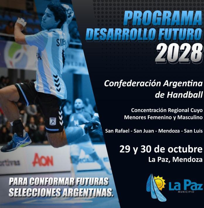 Continuando con el programa de desarrollo Futuro 2028 de la Confederación Argentina de Handball, se realizará una concentración este fin de semana, los días sábado 29 y domingo 30. Será en el departamento de La Paz, en el Este mendocino y estarán los jugadores de la región Cuyo.
