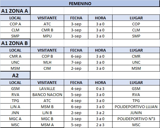 Municipalidad de Las Heras (0): Denise Romero, Andrea Magallanes, Paola Amicone, Ariadna Torrez, Lucía Ibáñez y Agustina Cardello (L); DT: Fabio Astudillo.