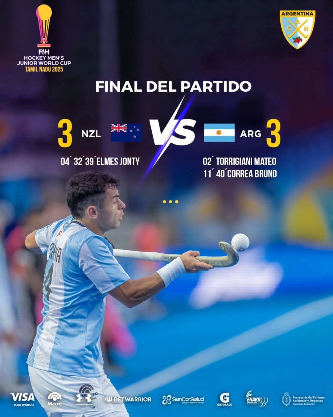 Los Leoncitos, con el coterráneo Lautaro Martínez, igualaron 3 a 3 con Nueva Zelanda y siguen invictos en el Mundial de Hockey sobre césped junior que se realiza en India