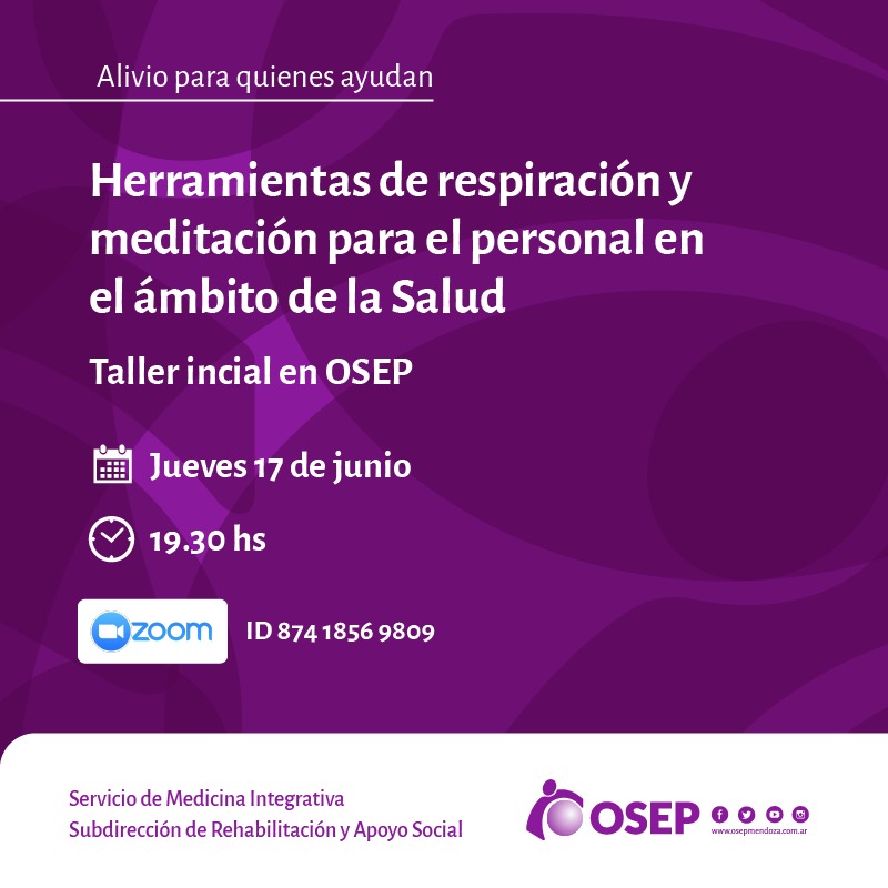 El Servicio de Medicina Integrativa de OSEP y el programa Aliviarte de la Fundación El Arte de Vivir ofrecen al personal asistencial y administrativo un “Taller de Respiración y Meditación” para reducir el estrés y mejorar la calidad de vida de los trabajadores expuestos física-psíquica y emocionalmente ante la pandemia.