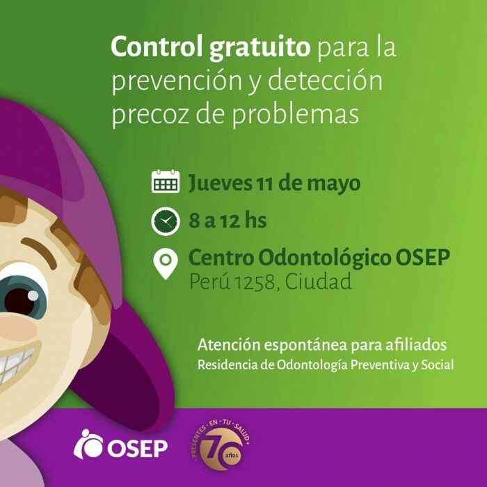 La Residencia de Odontología Social y Preventiva de la Obra Social de Empleados Públicos (OSEP) se suma a la iniciativa y el jueves 11 de mayo, de 8 a 12, ofrecerá controles espontáneos a sus afiliados, brindándoles un examen de encías gratuitos y, en caso de ser necesario, una derivación para un tratamiento posterior. Será en el Centro Odontológico ubicado en Perú 1258, Ciudad de Mendoza.
