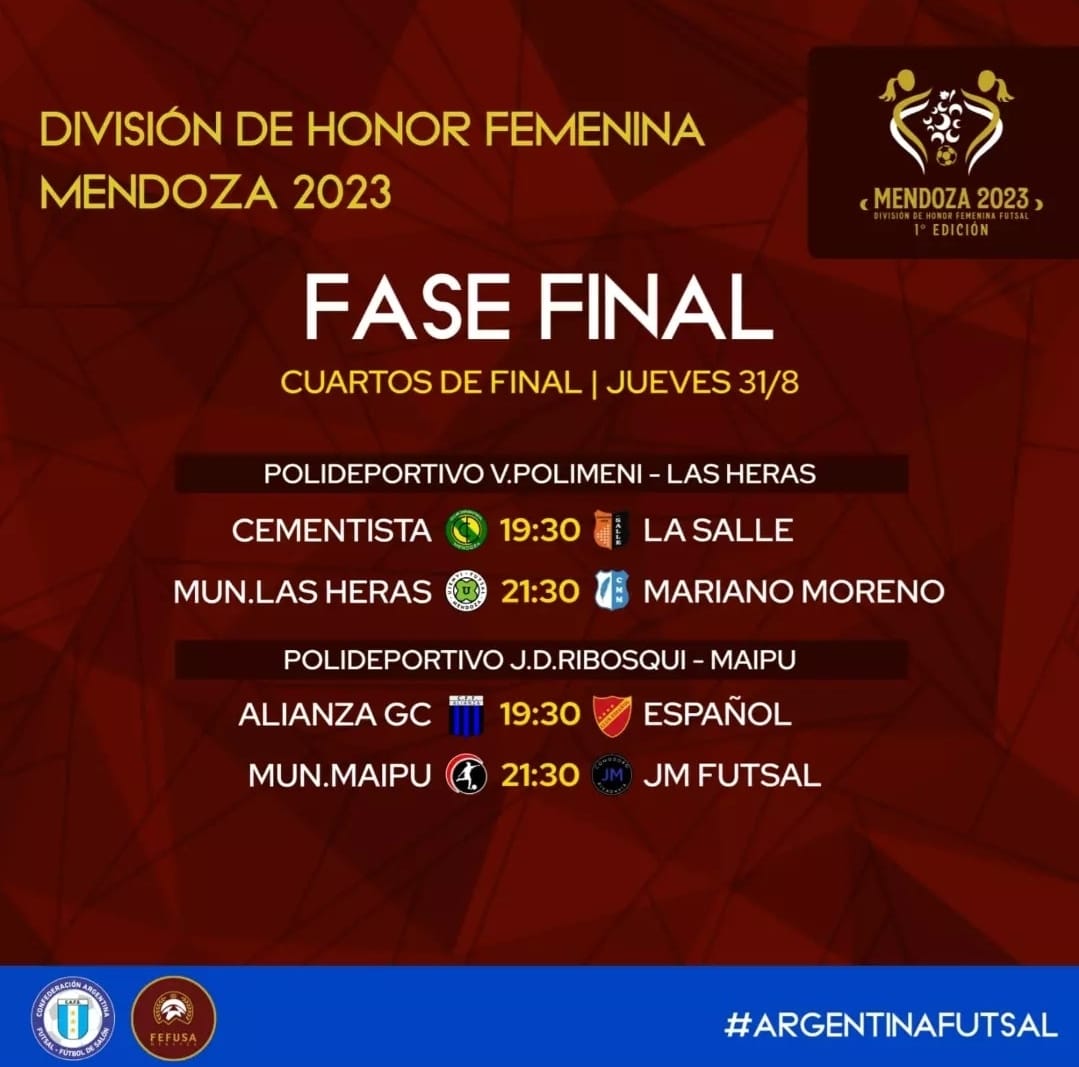 Así entonces, Cementista chocará con La Salle por el mismo lugar de la llave en que Maipú (goleó 8 a 1 a Casaca FC y así paso a quedarse c9n la zona) tendrá que verse las caras con JM Futsal.