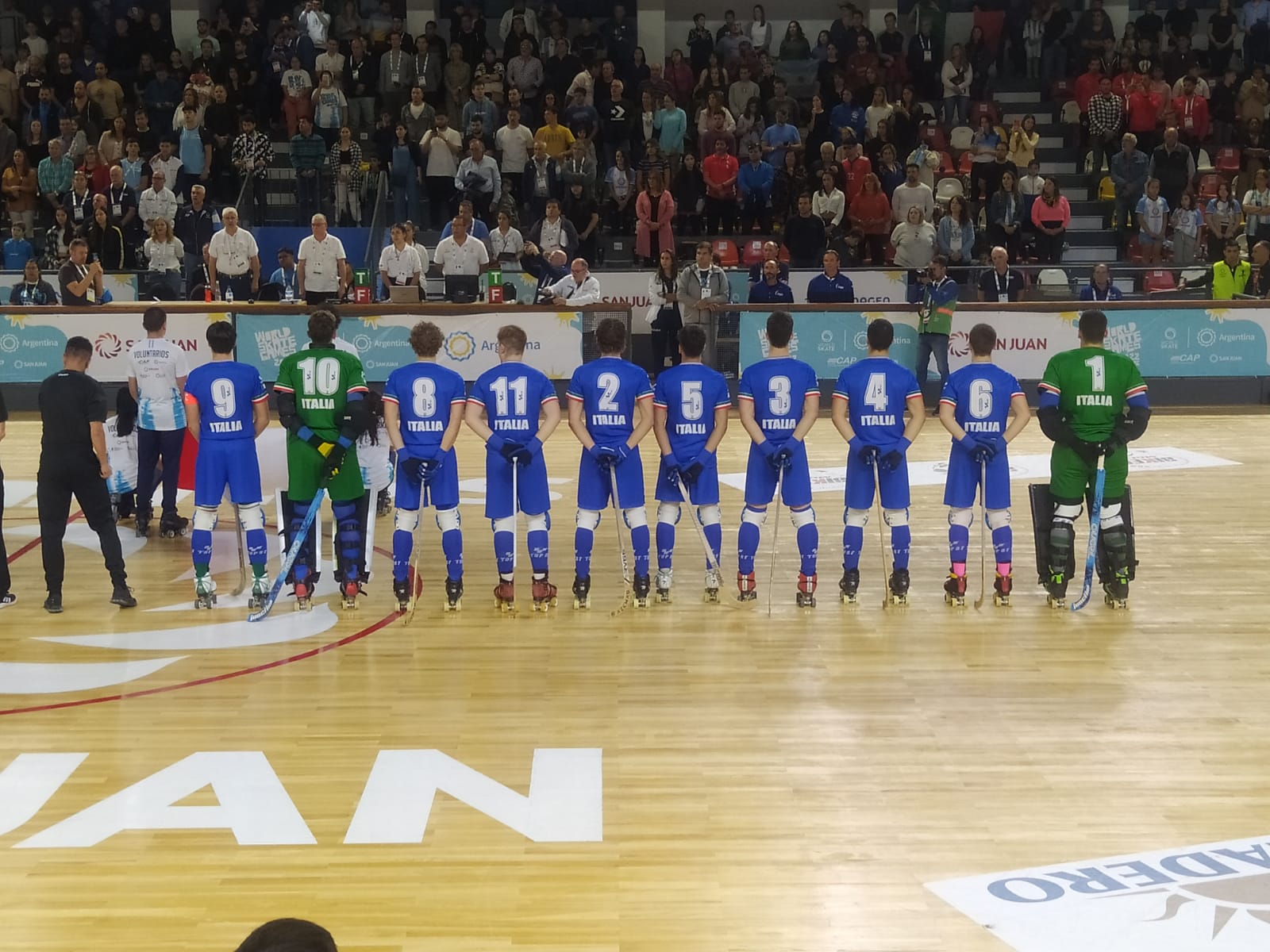 Con un Aldo Cantoni casi en su máxima capacidad , Argentina se llevo el duelo ante los Italianos, fue un partido duro desde lo físico ya que se apretó en todos los sectores de la pista, Italia propuso un juego de fricción lo que no impidió a los Argentinos en desplegar por momentos un buen hockey. La selección salio dispuesta a abrir primero el marcador, situación que logro rápidamente ya que a los pocos segundos de empezar la primera mitad ya estaba en ventaja lo que le dio a los dirigidos por Juan Manuel Garces la chance de sacar la ansiedad y manejar un poco el encuentro, pero Italia salio a buscar rápidamente el empate teniendo sus chances pero fue Argentina quien aprovecho eso espacios que aparecieron y en una ráfaga metió tes goles mas, luego de estar en ventaja Argentina empezó a rotar el equipo y situación que le permitió a los jugadores Azzurros de apretar y meter a los argentinos en una situación cómoda, y finalizar el primer tiempo 4 a 2.