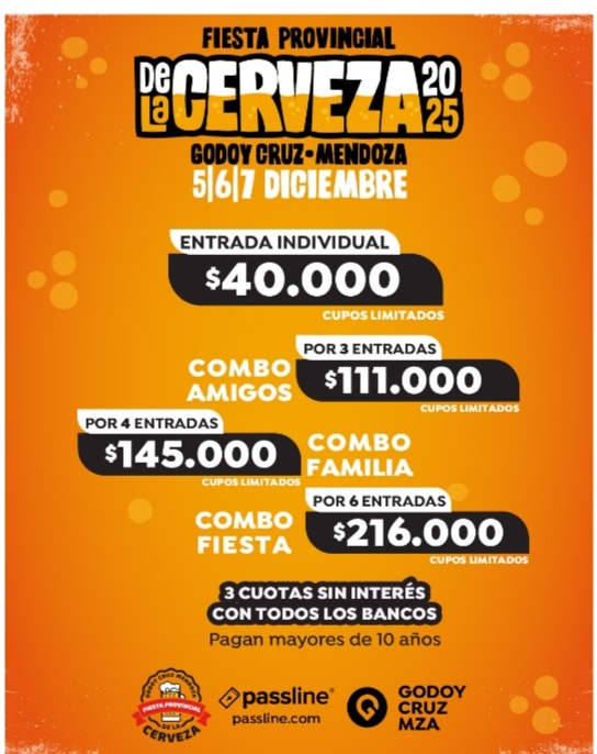 Para esta edición, el encuentro organizado por la Municipalidad de Godoy Cruz lanzó una promoción exclusiva de entradas con descuento con combos por cantidad para disfrutar del festival con precios accesibles.