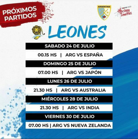 El próximo partido de los argentinos en estos Juegos Olímpicos 2021 será el lunes 25, a las 7 de la mañana, ante los japoneses. En la tercera fecha, el martes 26 de julio, Los Leones se medirán con Australia, a las 21.30, mientras que las dos últimas fechas por la fase de grupos serán ante India (28/7, 21.30 hs) y Nueva Zelanda (30/7, 7 hs).