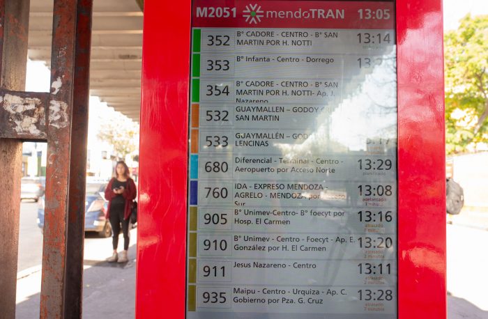 Como parte de la implementación de herramientas tecnológicas que faciliten la experiencia de los usuarios en el servicio público de transporte, el Gobierno de Mendoza continúa incorporando informadores en tiempo real que indican el horario de arribo de los colectivos.
