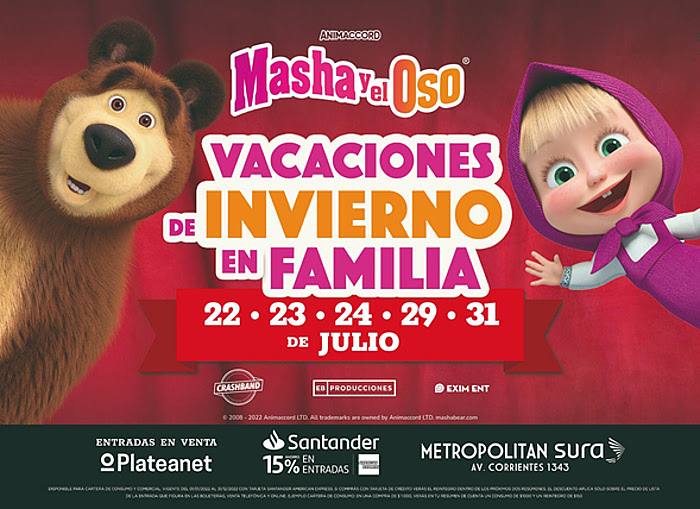 El show infantil del año vuelve a Buenos Aires en 10 únicas funciones con su aventura: "Rescate en el circo!". La presentación en vivo más esperada por los más chicos llega al teatro para bailar y cantar junto a Masha y el Oso el viernes 22, sábado 23, domingo 24, viernes 29 y domingo 31 de julio a las 14:30 y 16:30 en el Teatro Metropolitan Sura. Un show para que toda la familia disfrute durante las vacaciones de invierno.