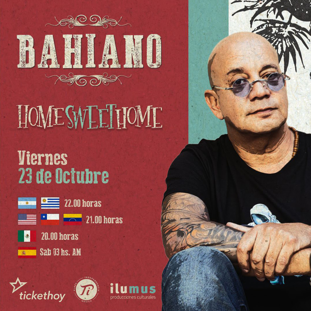 El viernes 23 de octubre, en este contexto tan particular, BAHIANO hará su primera presentación via streaming para 7 países en simultáneo: Argentina, Uruguay, Estados Unidos, Chile, Colombia, México y España.