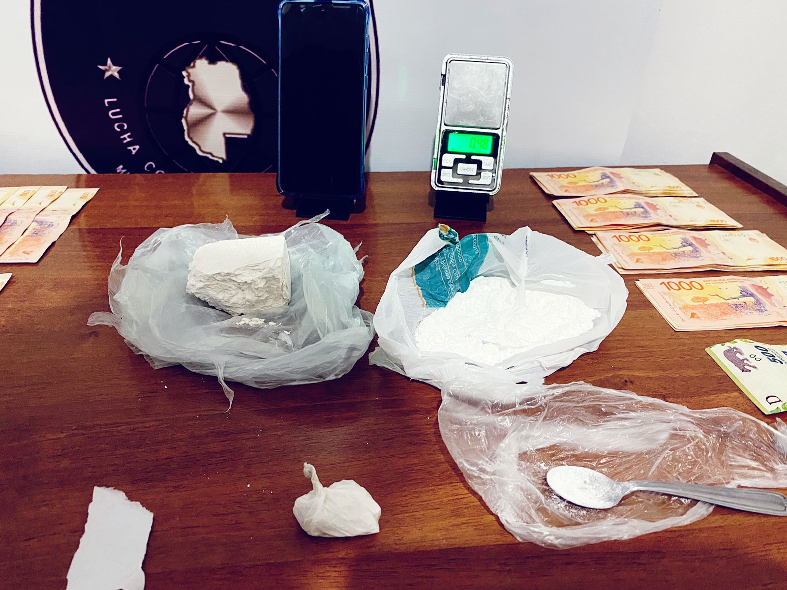 La primera medida fue en un domicilio ubicado en calle Costa Canal Zingaretti s/n de Tupungato. Allí, se detuvo a un hombre de 44 años, logrando el secuestro de: un envoltorio de nylon con cocaína compactada de 99,27 gramos, un envoltorio de nylon con cocaína en polvo de 43,46 gramos, un envoltorio de nylon termosellado con cocaína compactada de 5,21 gramos, una cuchara con restos de cocaína, un recorte de nylon color blanco, una balanza digital color gris en funcionamiento, un teléfono celular y $169.510 en billetes de baja denominación.