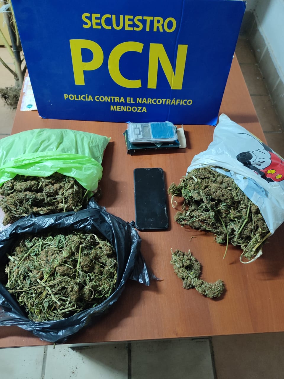 Por último, en una vivienda ubicada en Barrio Campo Papa de Godoy Cruz se detuvo a un joven de 18 años, a quien le secuestraron dos envoltorios de nylon con marihuana, con un peso de 11,8 gramos, un envoltorio de cocaína con un peso de 1 gramo, $32.800 y un teléfono celular.