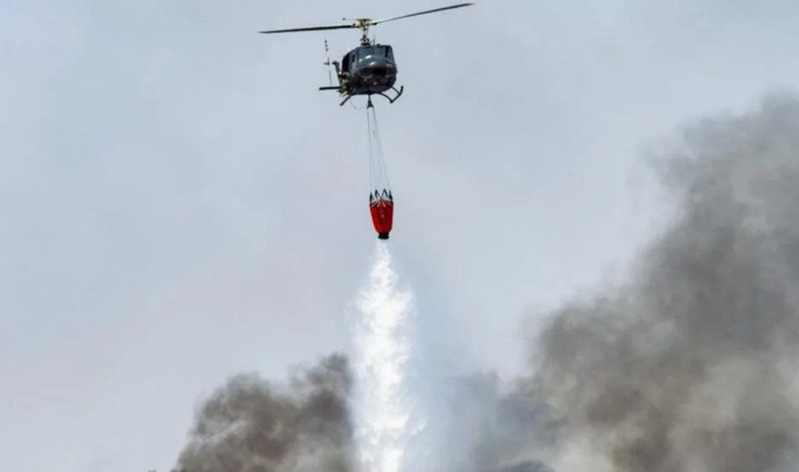 Es por eso que el helicóptero “Halcón” del Ministerio de Seguridad está sobrevolando la zona con un balde especializado para tirar agua desde las alturas.