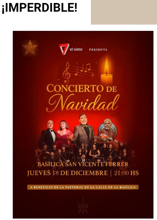 El Concierto de Navidad será registrado para su posterior emisión como especial televisivo el 24 de diciembre a las 22.30, por la pantalla de El Siete, acompañando a miles de familias en la espera de la medianoche.