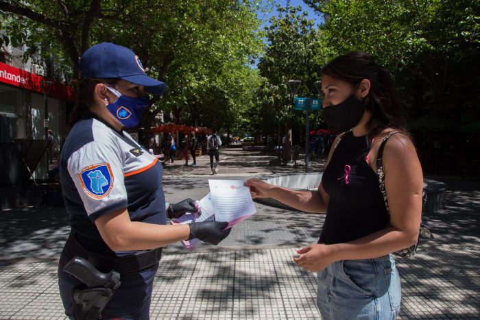 Este lunes por la mañana, las efectivos policiales entregaron folletería para concientizar a las mujeres sobre la enfermedad en el centro mendocino.