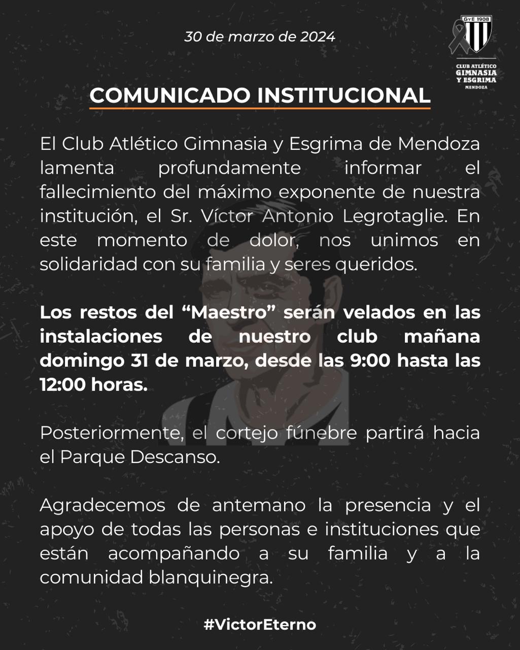 Con 86 años, murió Víctor Antonio Legrotaglie, símbolo máximo de Gimnasia y Esgrima de Mendoza y, para todos, el mejor futbolista de la historia provincial