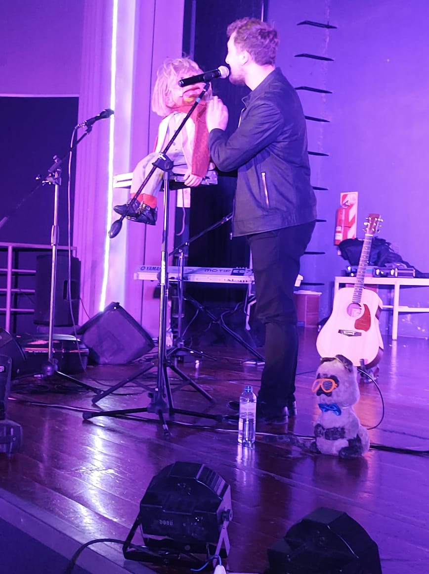 Martín dio un show con su muñeco durante casi dos horas ante un colmado salón en el este mendocino.