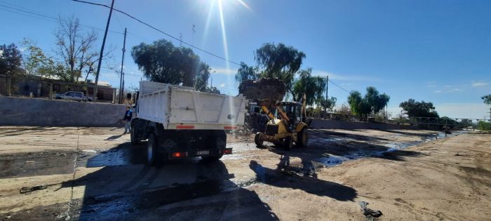 Para los trabajos, se está utilizando una pala cargadora, una minicargadora, una retropala y camiones bateas para la carga de los residuos a su disposición final, estos últimos, provistos por la Municipalidad de la Ciudad de Mendoza.
