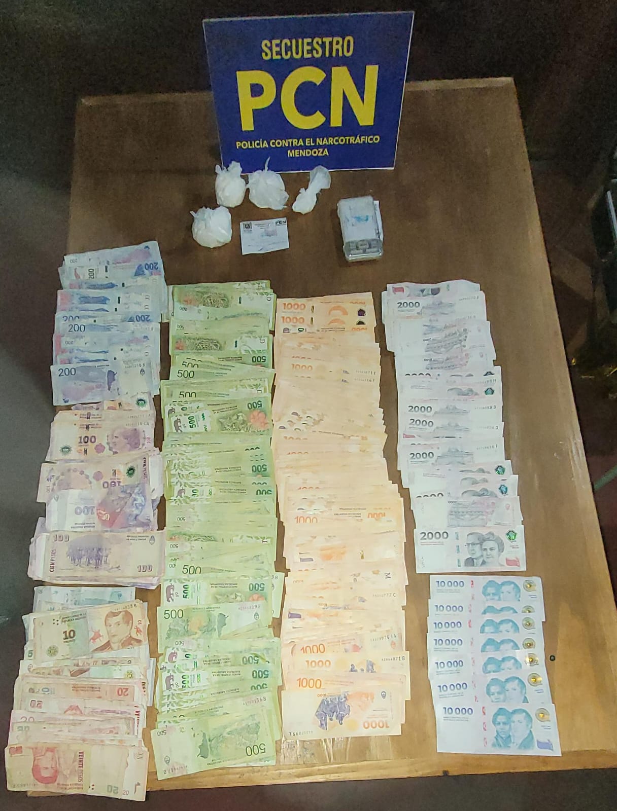 El procedimiento culminó con la incautación de 140 gramos de cocaína, una balanza digital de precisión y $366.280 en efectivo en billetes de diferentes denominaciones, además de elementos para el fraccionamiento de droga. Todos los elementos fueron puestos a disposición del Juzgado Federal de San Rafael.