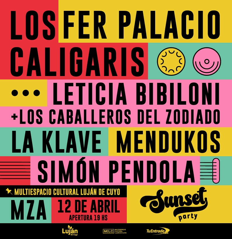 Llega el Sunset Party al Multiespacio Cultural Luján de Cuyo. Un evento para bailar en familia y entre amigos hasta la madrugada, con la participación de DJ’s y bandas mendocinas, además del show especial de Caligaris y el cierre de Fer Palacio. Una verdadera fiesta al aire libre imperdible para disfrutar en Luján, el viernes 12 de abril, a partir de las 19 horas, en el MCLC. Las entradas están a la venta en Tuentrada.com.