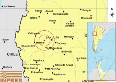 Se realizó un movimiento telúrico en la provincia de San Juan. Según los datos del INPRES (Instituto de Prevención Sísmica) el sismo, que se percibió a las 23:20:10, tuvo una dimensión 5.1 grados. El origen fue 38km O de San Juan, 147km al N de Mendoza y 52km al SE de Calingasta. Mientras que el hundimiento fue de 122km.