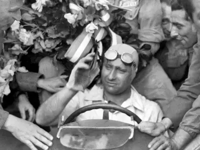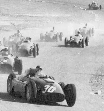 Fangio hizo el récord de vuelta y tuvo un promedio de 133,721 km por hora entre los 13 autos que participaron de la histórica carrera en el circuito del Parque General San Martín. Ese año se consagró por cuarta vez campeón mundial (1951, 1954, 1955 y 1956) y al año siguiente (1957) lograría el quinto título. Fangio nació en Balcarce, Buenos Aires, el 24 de junio de 1911 y murió el 17/7/1995, a los 84 años en Buenos Aires.
