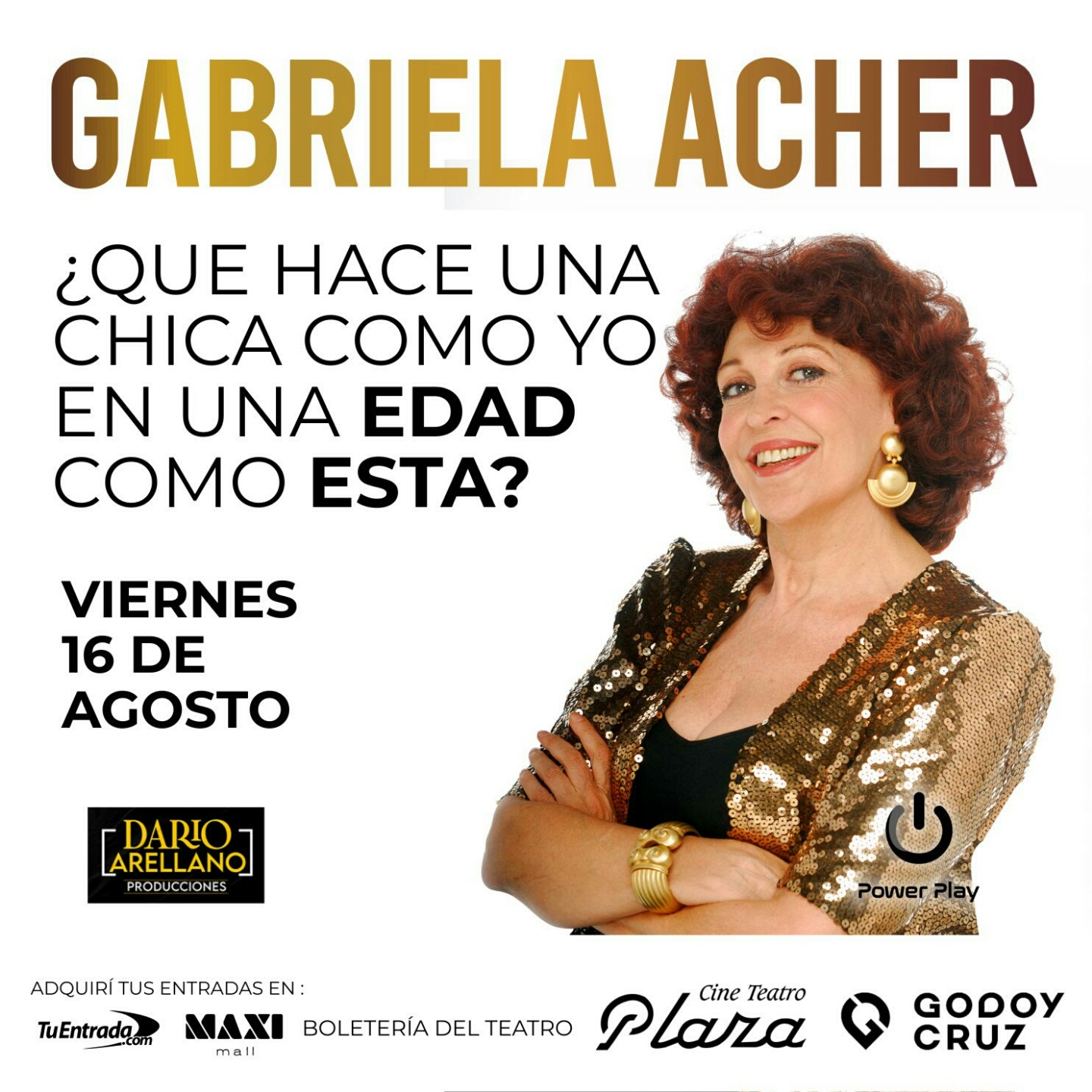 Después de varias temporadas en la calle Corrientes, Gabriela Acher volverá a Mendoza con su unipersonal ¿Qué hace una chica como yo en una edad como esta? el viernes 16 de agosto, en el teatro Plaza. Las entradas están disponibles en Tuentrada.com, Maxi Mall y boletería del teatro.