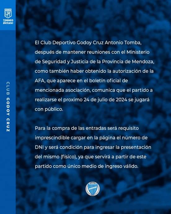 Se asentó que habrá presencia del público neutral en las tribunas. Días atrás, el Tomba había avisado que el duelo se jugaría sólo con seguidores locales, pero ahora hubo un giro de última hora que alteró el panorama. Y finalmente, un comunicado oficial.