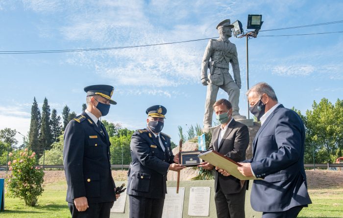 El encuentro tuvo como escenario el monumento de los Policías Caídos ubicado en el predio de la Virgen en Guaymallén, donde las autoridades realizaron un homenaje y destacaron el arduo trabajo que realiza toda la fuerza policial, tanto en estos tiempos de pandemia como hace dos siglos.