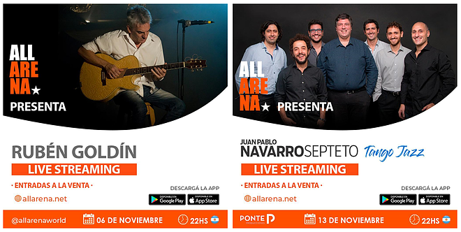 ALL ARENA desembarca en Argentina con dos conciertos de Rubén Goldín y Juan Pablo Navarro Septeto, respectivamente, a los que se sumarán próximamente los de La Portuaria y Tonolec, y otros espectáculos más procedentes de España y México. Con todo el know how y la experiencia de NonStop TV (productores y realizadores de contenidos para compañías como Disney, Netflix, Amazon, entre otros importantes grupos internacionales), el diferencial que ofrece ALL ARENA radica en tres elementos fundamentales: la alta calidad de la factura de sus producciones audiovisuales, una experiencia de uso única por el empleo de una app con acceso multidispositivo, y la solidez y seguridad de la plataforma tecnológica que soporta el servicio de streaming. ALL ARENA garantiza un streaming seguro y de alta calidad con el respaldo de importantes firmas tecnológicas como, por ejemplo, Amazon Web Services (AWS). La solución tecnológica de ALL ARENA está dirigida a ofrecer una experiencia de uso excepcional, gracias a la comodidad que ofrece su acceso a través de una app específicamente desarrollada para un amplio abanico de dispositivos como celulares, tabletas, computadoras, dispositivos de videostreaming OTT y Smart-TVs, entre otros, con el objetivo puesto en que todos los eventos puedan disfrutarse siempre en la gran pantalla de la televisión.