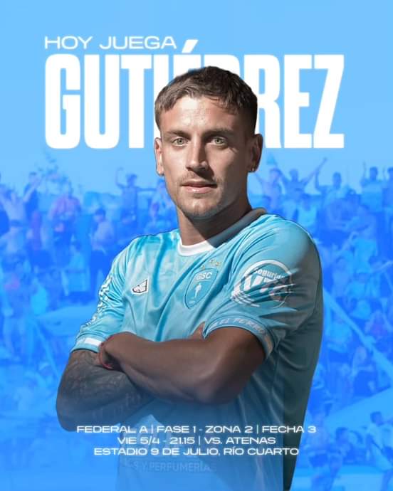 Gutiérrez Sport Club jugará de visitante ante Atenas de Río Cuarto, en una cita correspondiente a la 3° fecha de la Zona 2 del torneo del torneo Federal A. El cotejo se hará desde las 21.15 y contará con el arbitraje de José Darío Sandoval, de Concordia (Entre Ríos).