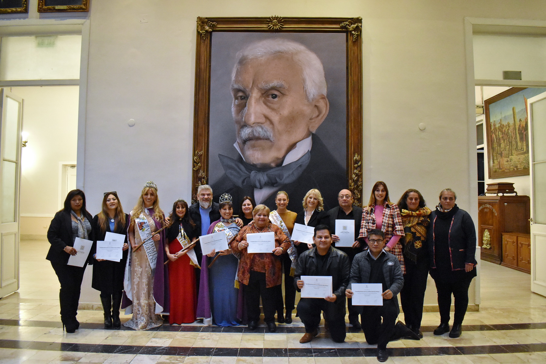 Los diplomas de reconocimiento y la copia de la Resolución que dio origen a la ceremonia de distinción, fueron entregados por las legisladoras, el funcionario provincial y la Reina Nacional de la Vendimia 2024 a: Victoria Herrera; Vicente Mamaní; Alejandro Ortiz; Adrián Carreño; Miriam Seballe; Alicia Carrillo y Andrea Jaquier.