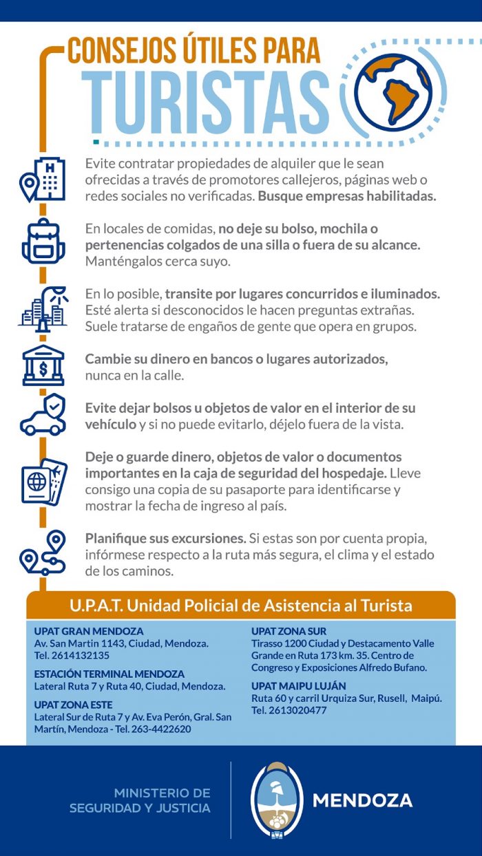 Gran Mendoza. Av. San Martín 1143 Teléfono: 0261-4132135 Correo: policiaturistica@mendoza.gov.ar