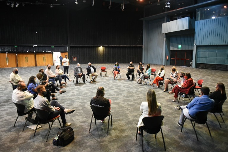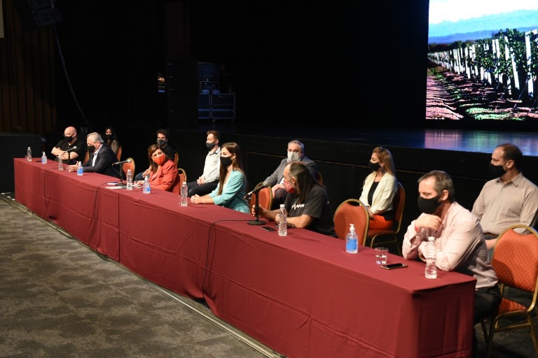 En la mañana de este jueves, en el Auditorio Ángel Bustelo se reunieron representantes de todos los sectores de la cultura, el turismo y la vitivinicultura. Participaron la reina y virreina nacional de la Vendimia 2020, Mayra Tous y María Eugenia Serrani, respectivamente; el Director del Fondo Vitivinícola, Sergio Villanueva; directores de Fiestas de la Vendimia, como Alejandro Grigor, Claudio Martínez, Walter Neira, entre otros; Marcelo Ortega, de Film Andes; representantes de las distintas asociaciones de músicos, actores y bailarines de Mendoza y, de manera virtual, los directores de Cultura de los departamentos, entre otros.