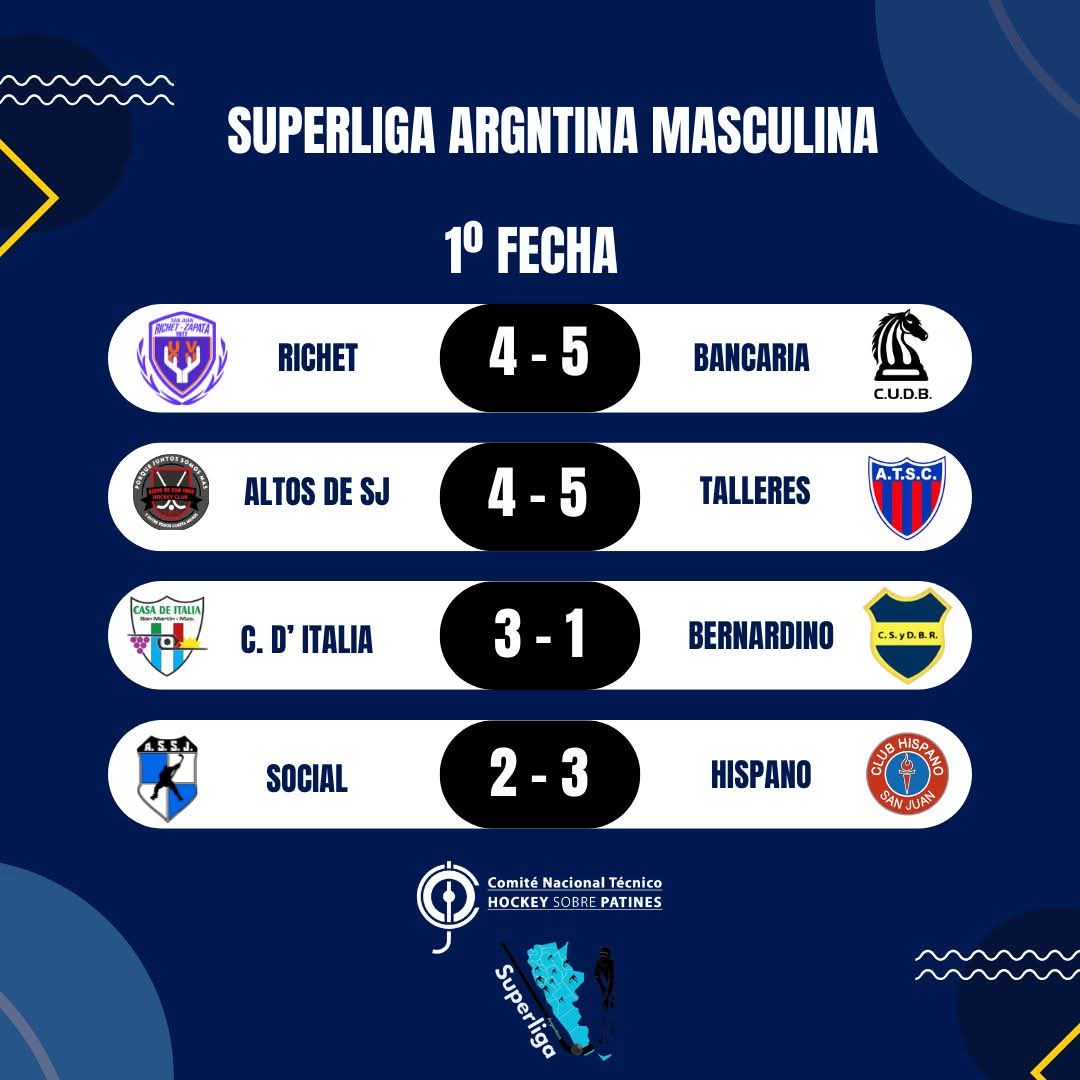 Ya comenzó la Superliga masculina de hockey sobre patines. En la primera fecha, los triunfos fueron para Leonardo Murialdo, Andes Talleres y Casa de Italia