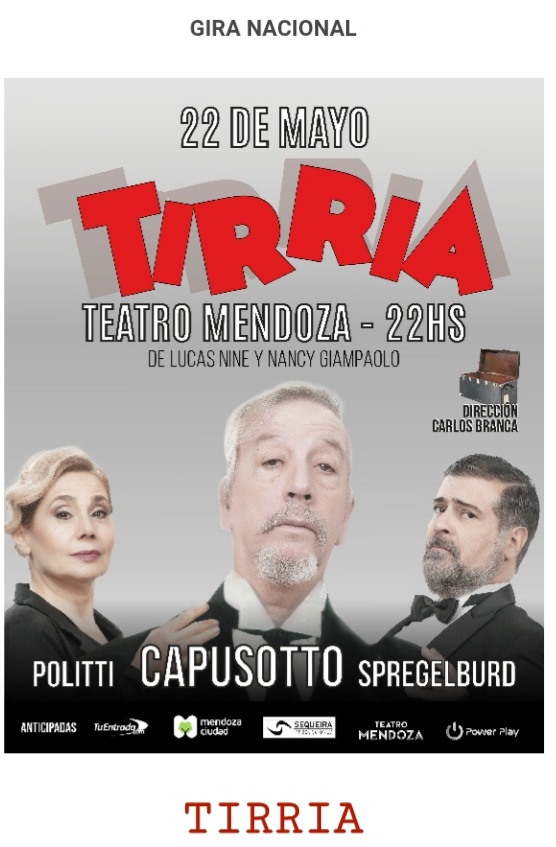 La aclamada comedia negra "Tirria" protagonizada por un elenco de lujo encabezado por Diego Capusotto, Andrea Politti y Rafael Spregelburd, llega a la provincia luego de su exitosa temporada en la calle Corrientes.